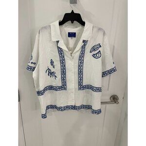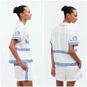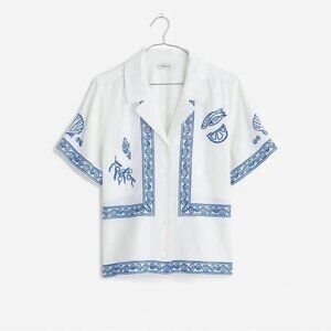 Gorgeous madewell x lsg embroidered linen button down shirt. Never been worn, with tags attached. We partnered with cult-favorite brand Lisa Says Gah on this limited-edition, vacation-ready collaboration inspired by the Greek Isles and deepest blue seas. This breezy linen-blend short-sleeve shirt features embroidered details allover.