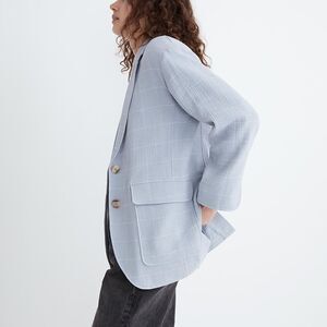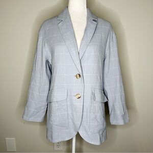 NWT Madewell Relaxed Larsen Cotton & Linen Light Blue Windowpane Blazer Jacket