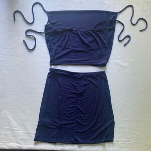 NWT Madida London Skirt Set Mini Skirt and Cowl Midriff Sz M Navy Shimmer Rave