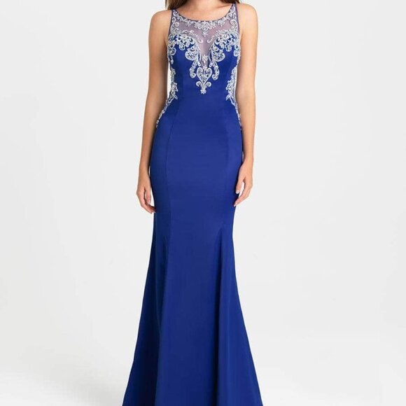 NWT Madison James 16-428 Embroidery Prom Dress Royal Blue Size 6
