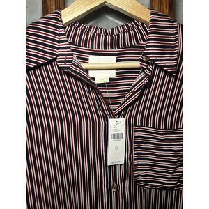 NWT Maeve Adelaide Poplin Button Top Shirt Womens XS Red White Blue Stripe Rayon