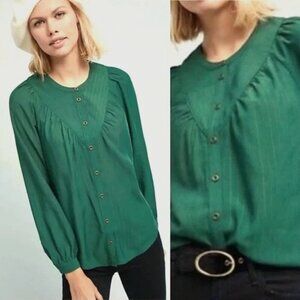 NWT Maeve Anthropologie Avignon Button Down Boho Peasant Top Western XL