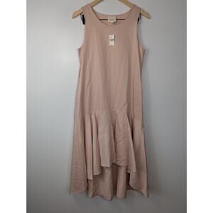 NWT Maeve Anthropologie Camellia Dropwaist Ruffled High-Low Sleeveless Dress in Rose. Pullover, scoop neck, pockets, flowy silhouette, Lyocell/Cotton/Linen blend. Soft feminine piece that would make this a cute boho chic or dainty twee aesthetic staple in your wardrobe.