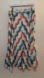 Maeve Anthropologie Maria Multicolor Chevron Sweater Midi Skirt. Full midi skirt with flowy, somewhat a-line silhouette. Stretchy waistband with side zip closure. Knit/lace/crochet like overlay is turquoise blue/green and a salmon pinkish orange and cream in a zig zag/chevron pattern all over. Cute with a chambray top or graphic tee!