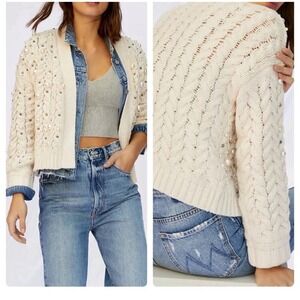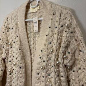 NWT Maeve Anthropologie Party Pearl Embellished Knit Cream Open Cardigan OS