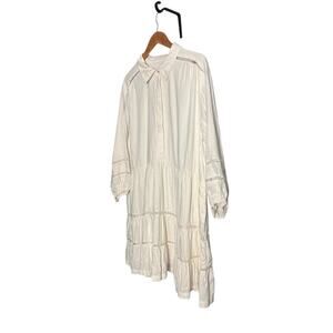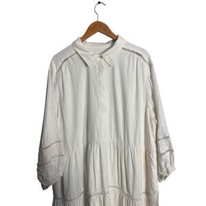 Anthropologie, Maeve, Plus Size, 2X, NWT, New With Tags, Linen Blend, Viscose, White Dress, Tiered Dress, Mini Dress, Shirt Dress, Collared, Ladder Lace, Eyelet Detail, Prairie, Boho, Bohemian, Cottagecore, Resort Wear, Vacation, Bridal, Beach, Summer, Spring, Flowy, Casual, Plus 2XL