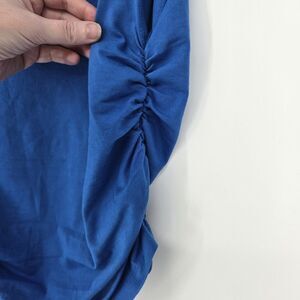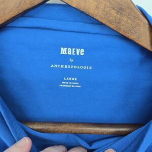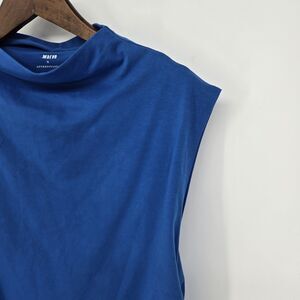 NWT Maeve Blue Mocked Neck Shell Top Large Cotton Blend Rouching