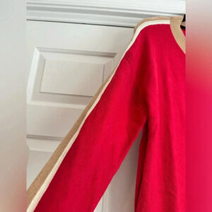 Maeve by Anthropologie Red and Tan Colorblock Boyfriend Sweater - Size M