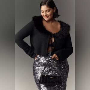 NWT! Maeve Faux-Fur Collar Crop Cardigan Sweater - Size Medium 🏀