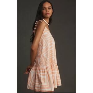 NWT Maeve Flounce Peach White Cotton Mini Dress - Small