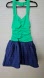 NWT Maeve Halter Twofer Mini Dress, Green Navy, Puffy Bubble Hem