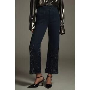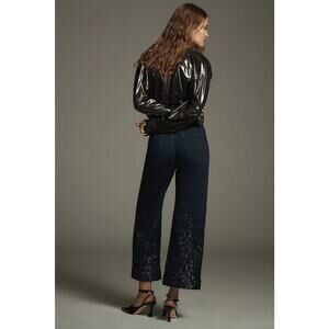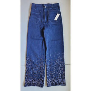 NWT Anthropologie Maeve The Colette Cropped HR Wide-Leg Jeans Size 24Tall Sequin Sparkle Edition #7A504