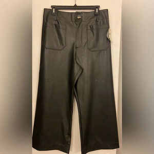 NWT Maeve The Collette Cropped Wide Leg Faux Leather Pant Black PETITE Size 31