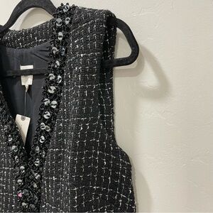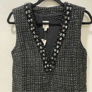 NWT Maeve V-Neck Tweed Mini Dress Women's Medium Black Silver