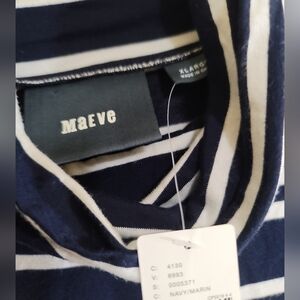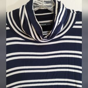 NWT Maeve by Anthropologie Navy Striped Turtleneck Dress XL Stretch Jersey Knit