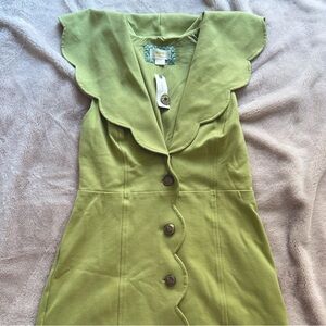 NWT Maeve by Anthropologie Scalloped Buttondown Dress Retro Green Size M