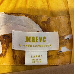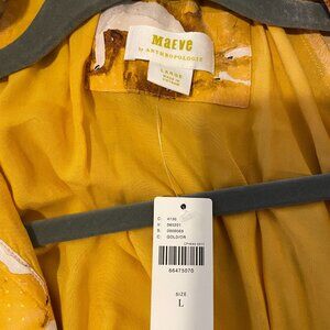 Never worn (new with tags) shirtdress by Maeve. Gold mini dress, with a tie-waist, featuring long sleeves. and a back zip. Perfect for work, a weekend getaway or evening cocktails. Size L
