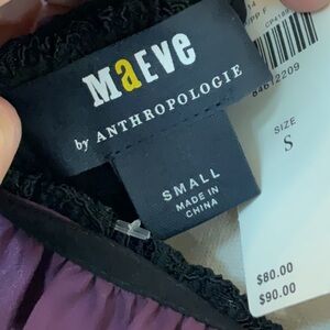 NWT Maeve by Anthropologie organza sheer layered over cropped black panel. Ruffled bottom. Can be worn out or tucked in. Perfect dressed up or with jeans.