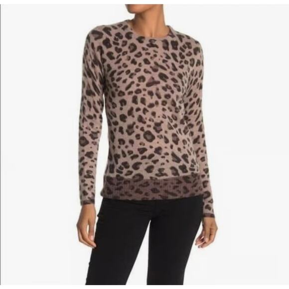 NWT Magaschoni 100% Cashmere Leopard Print Sweater – Brown Combo – Size S