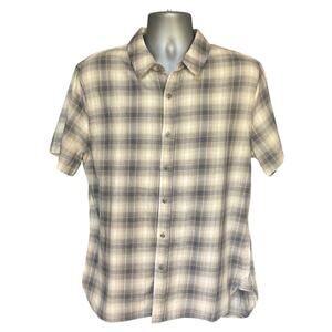 NWT Magaschoni Button Down Size M Neutral Gray Short Sleeve Plaid