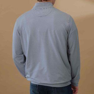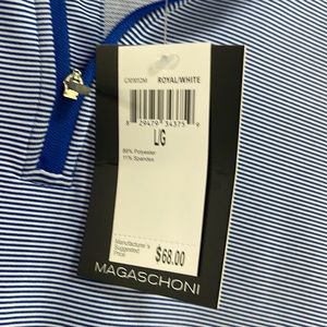 Brand new with tags! Our Magaschoni Men's long sleeve quarter zip top is supremely comfortable. With a soft spandex-blend stretch knit, you can stay active while looking your best. Features a mock neckline and eye-catching allover stripe pattern.