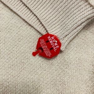 Magaschoni V-neck nylon/mohair/wool blend sweater. Absolutely beautiful! Unique and more fun than just your basic neutral sweater. Color is cream/beige/natural). Still has purchase/home removal tag attached