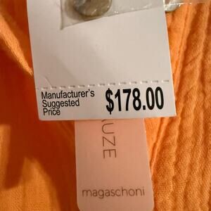 Add this NWT Magaschoni dress to your closet today! The orange and cream color combination is perfect for adding a pop of color to your outfit.