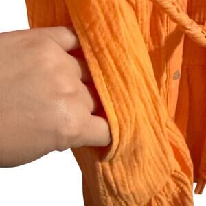 NWT Magaschoni thigh length full sleeve button up orange cream dress Size M