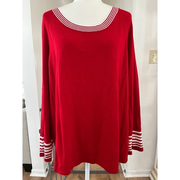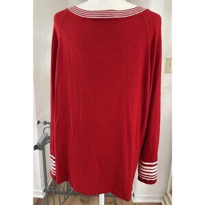 NWT Maggie McNaughton Riviera 2X Red Combo Sweater With White Stripes