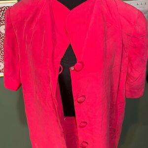 Vintage Maggy London Pink 100 SILK Skirt Suit Set 80s 90s NWT Two Piece Power Suit! Size 6 in great condition just some light blemishes in back left shown in picture!