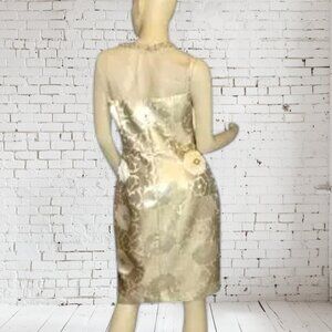Beautiful gold on gold metallic floral dress with sheer neckline with rhinestone embellished neckline