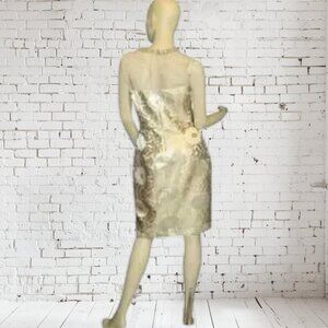 NWT Maggy London Gold Metallic & Rhinestone Embellished Formal Mid-length Dress