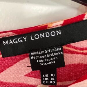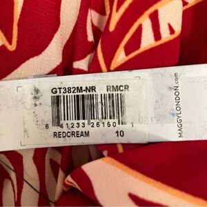NWT Maggy London Wrinkle-Free Red & Cream Leaf A-Line Short Sleeve Dress (10)