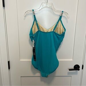 NWT Magicsuit Size 12 Blue Malibu Teal One Piece Swimsuit V-neck Underwire