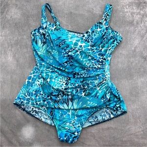 NWT Magicsuit Women’s Blue Reptile Floral Swimsuit 4 Adjustable Straps Sz 8