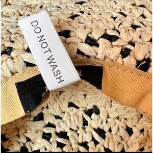 NWT Magid Hats Black & Neutral Straw Crochet Wide Brim Sun Summer Floppy Hat