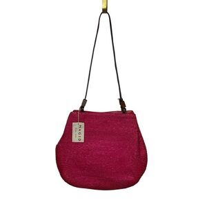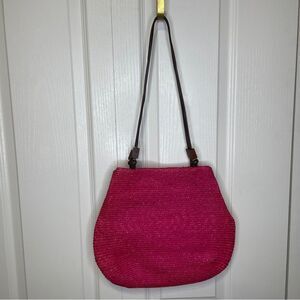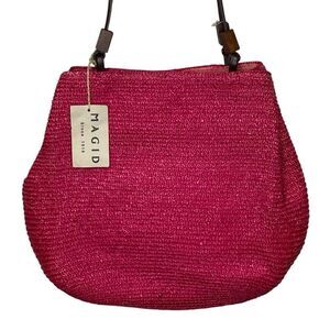 NWT Magid Wheat Straw Shoulder Bag Purse Fuschia Pink Brown Strap