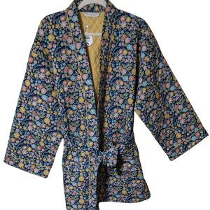 NWT Mahogany Elsa quilted floral robe jacket belted oversized short cotton S/M
