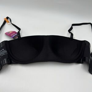 New with tags. Versatile black bra can be worn 6 different ways: strapless, halter, crisscross, one-shoulder, classic, and more. Perfect for any outfit, with lightly padded cups for comfort and support.