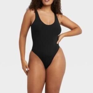 NWT Maidenform Basically Sexy Seamless Smoothing Thong Bodysuit Size Small Black