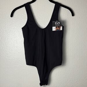 NWT Maidenform Basically Sexy Black Seamless Smoothing Thong Bodysuit Women's Size Small