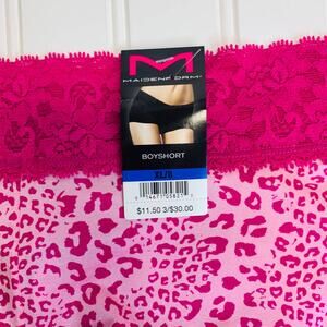 NWT Maidenform Boyshort Underwear Panties Hot Pink Animal Print Lace Sz XL 8