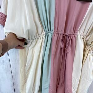 NWT Main Strip Cream/White/Mint/Rose Colorblock Tie Waist Romper Size Small