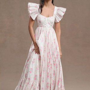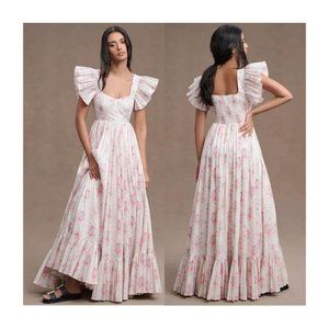 NWT Maison Amory French Chateau Floral Flutter-Sleeve Gown