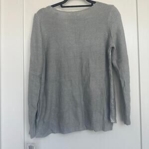 NWT Maison Jules Womens Silver Long-Sleeve Metallic-Flecked Sweater Size XL