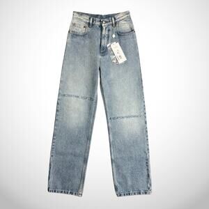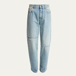 Brand new with tags attached - MM6 Maison Margiela distressed 5 pocket straight-leg jeans in faded light-wash denim, size 26