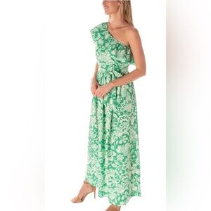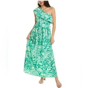 NWT Maison Tara One Shoulder Sleeveless Crepe Floral Maxi Dress Green Size 18W