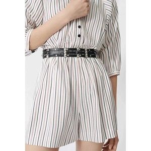 Maje’s Founder Judith Milgrom says every piece of clothing has its own story and soul – we reckon this Amino belt is a fiercely independent one. It’s hard to think otherwise, with its three-strap design made of leather and silver metal. Punctuated by studs and crystal stones, it’s as strong as you want it to be when cinching the waist of a simple shirt-style dress. Team it with buckled boots and a metallic bucket bag to keep up with all that boldness.