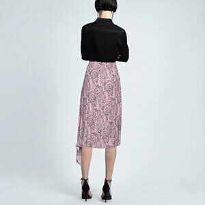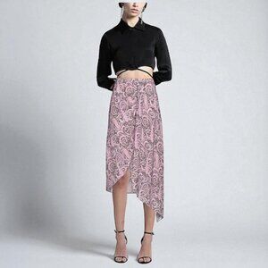 NWT Maje Asymmetric Printed Skirt Black Pink Viscose XL EU42 US10-12