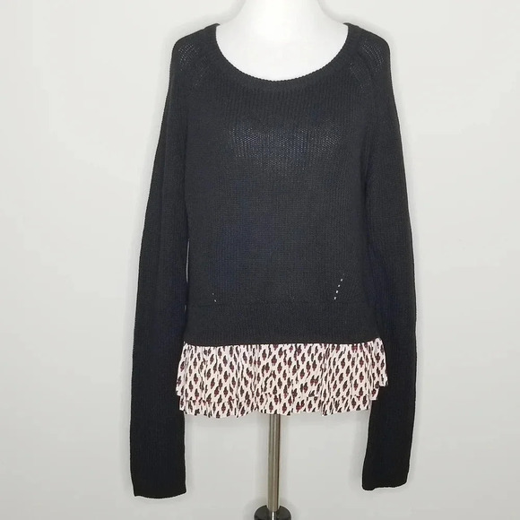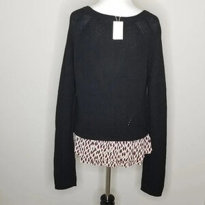 New with Tags Maje black knit sweater with red and cream blousy layered hem.